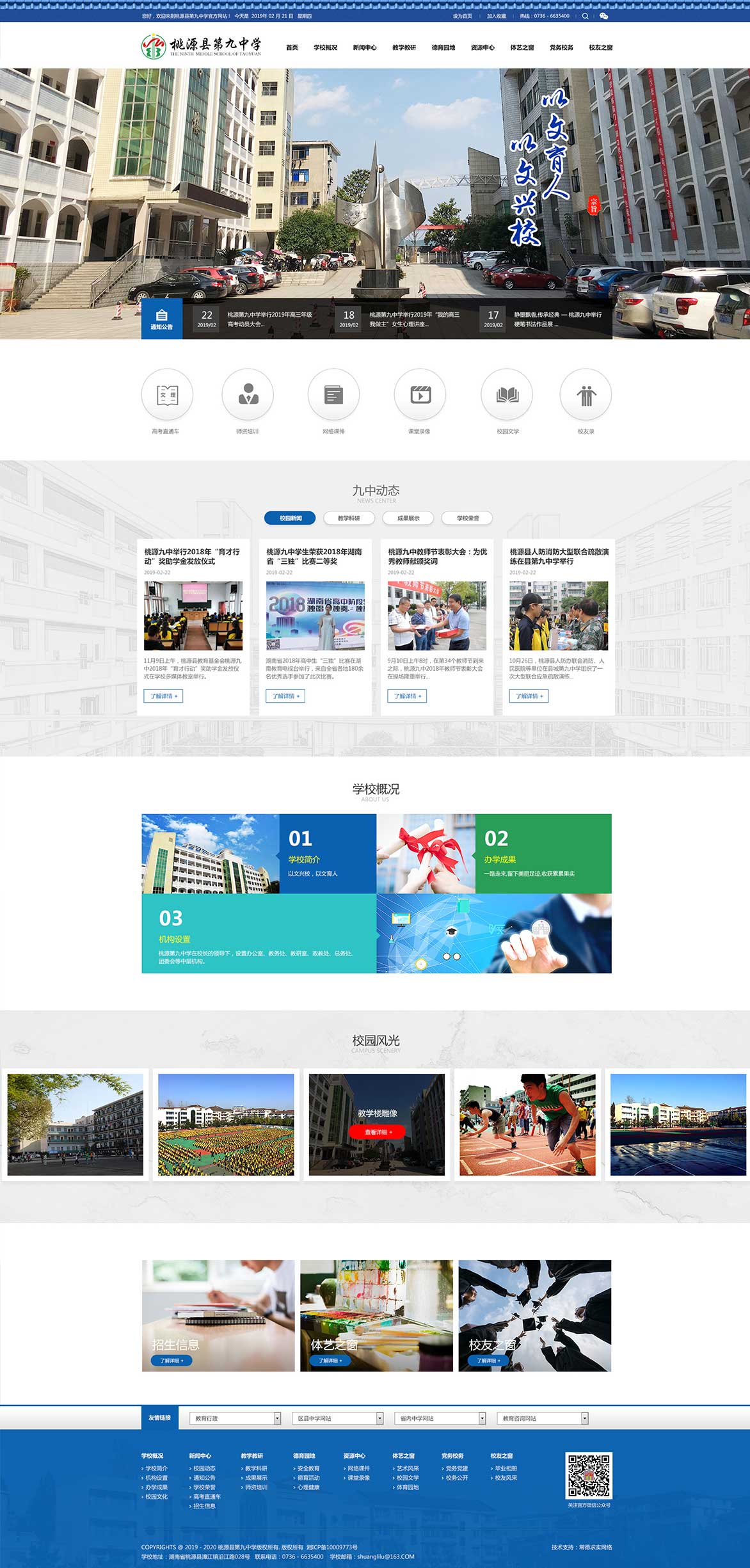 桃源縣第九中學(xué)坐落在桃源縣城漳江鎮(zhèn)沅水之濱,創(chuàng)建于1982年,前身為桃源縣城關(guān)中學(xué),1999年晉升為市級示范性中學(xué)。現(xiàn)有教學(xué)班67個,學(xué)生3940人,教職工324人。 學(xué)校校園面積70余畝,教學(xué)樓、電教樓、學(xué)生公寓樓、學(xué)生食堂等教學(xué)生活設(shè)施齊全,儀器室、實(shí)驗(yàn)室、圖書室均達(dá)國家二類標(biāo)準(zhǔn)。近年來,投入1000多萬新建了高標(biāo)準(zhǔn)運(yùn)動場,重修了校門和高三教學(xué)樓,辦學(xué)條件全面改善,校園環(huán)境更加宜人。